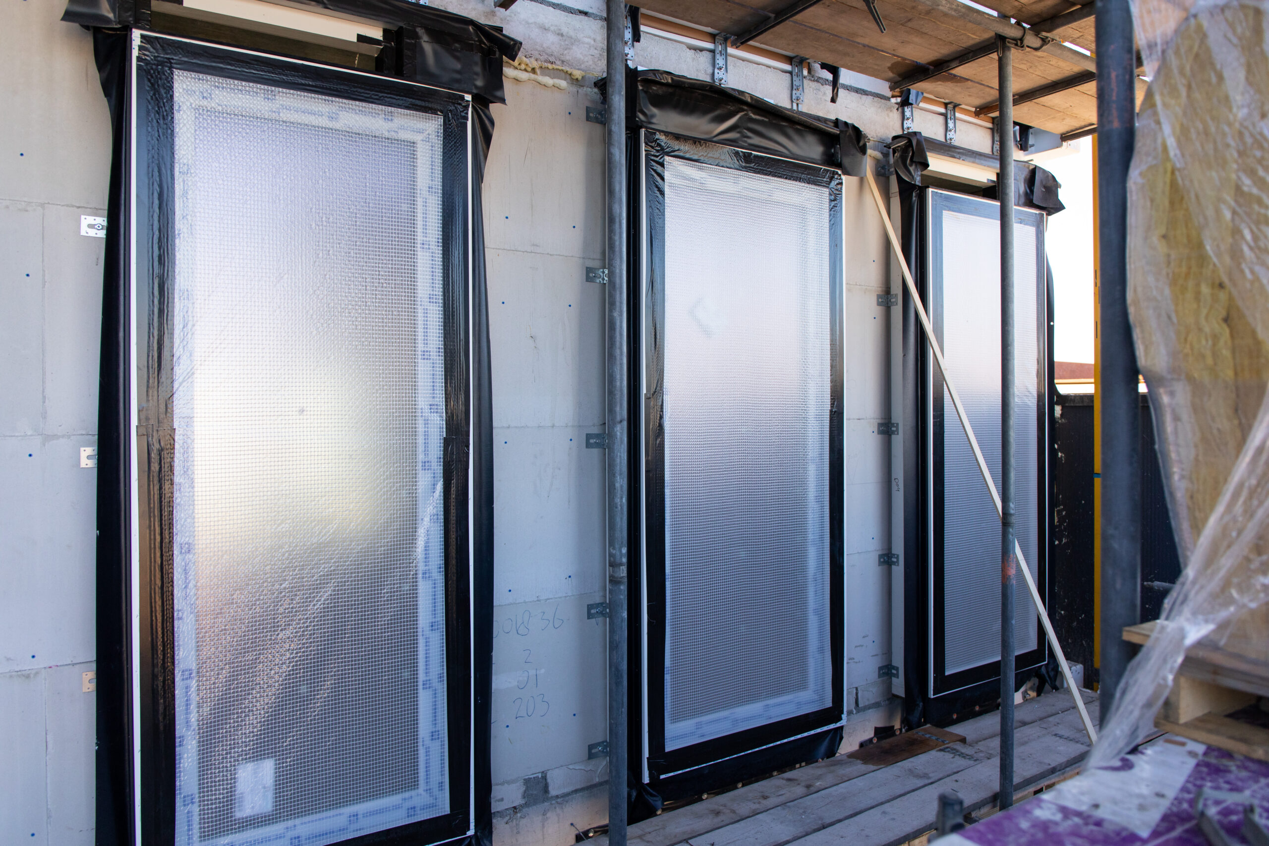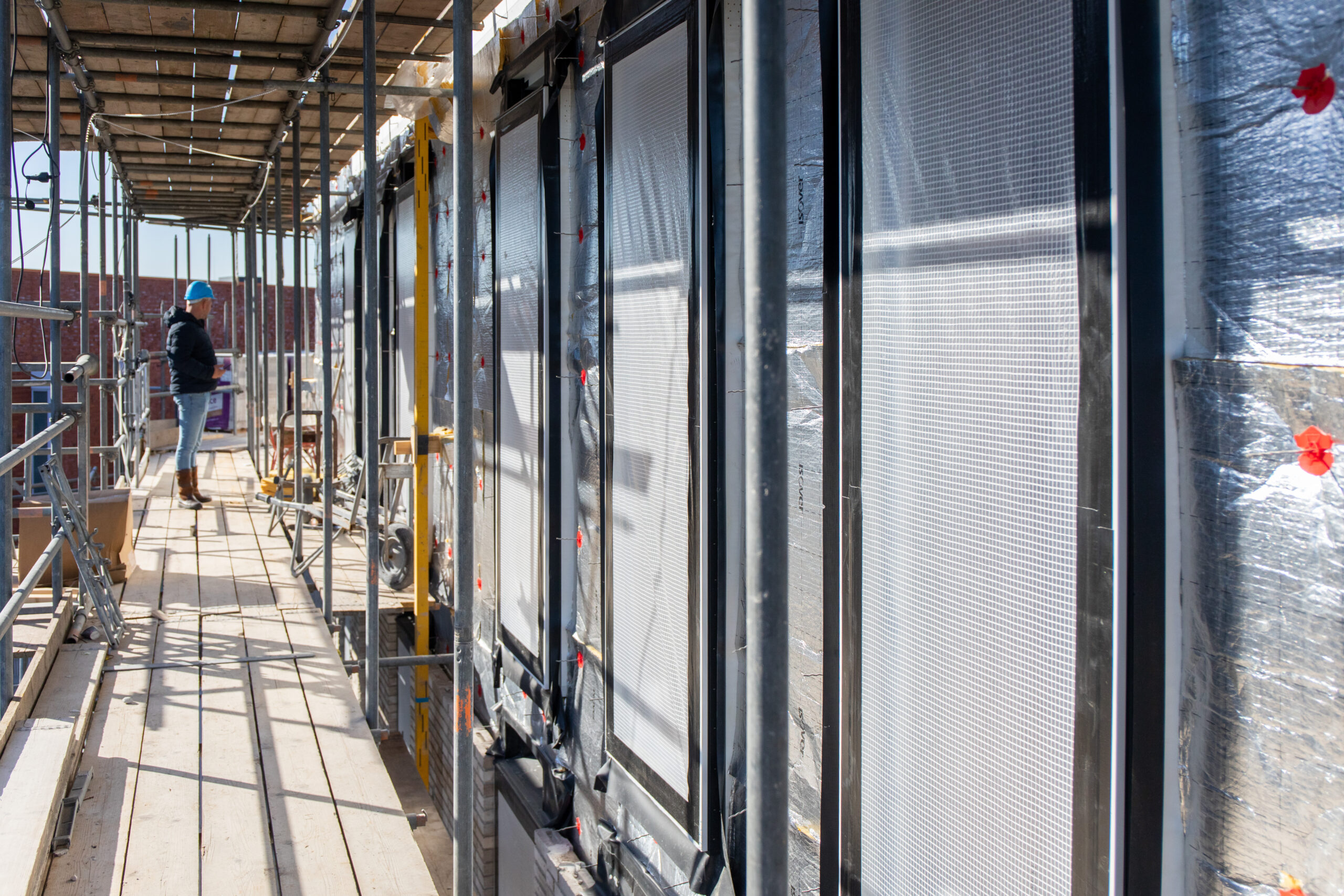 De kozijnen zijn tijdens de montage en het metselen volledig beschermd tegen eventuele beschadigingen die tijdens het bouwproces kunnen optreden.